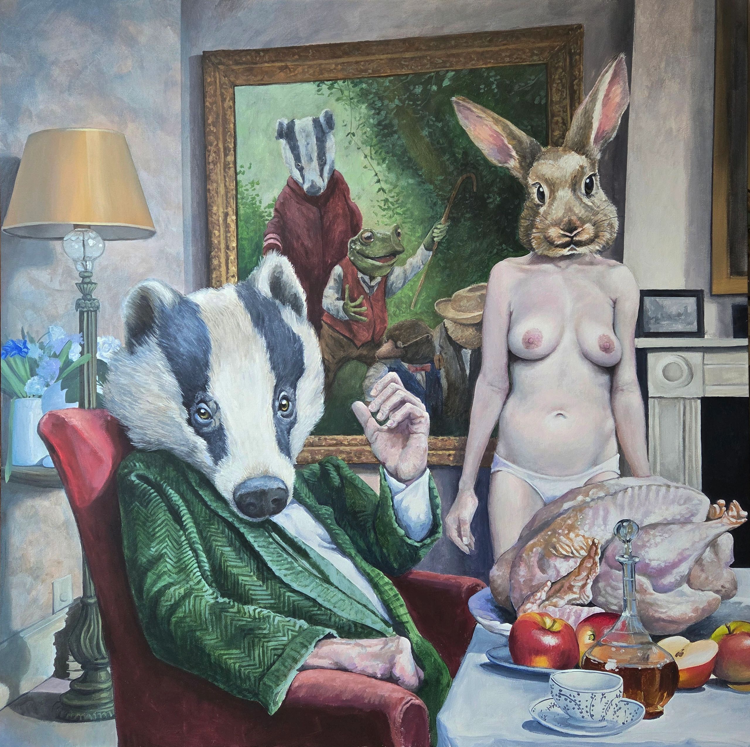 Badger And Bunny At Home, acrylic on canvas, 48" X 48"